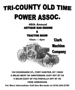 The Tri-County Old Time Power Association is holding 46th Annual Antique Gas Engine and Tractor Show on the grounds of Schoharie Crossing State Historic Site during Saturday, July 8th and Sunday, July 9th. This show runs from 10am to 4pm each day and will feature a variety of antique engines, from water pumps to hit and miss, as well as a several farm implements.